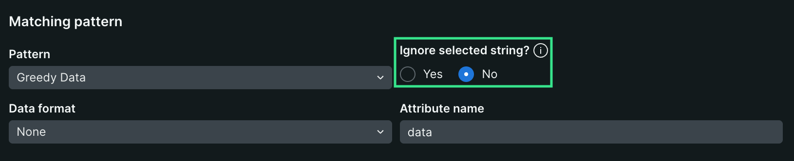 • Pour les sous-chaînes que vous souhaitez éviter d'analyser et qui incluent des valeurs dynamiques, assurez-vous de les définir comme sous-chaînes dynamiques en les sélectionnant et en modifiant leur configuration sur Yes.